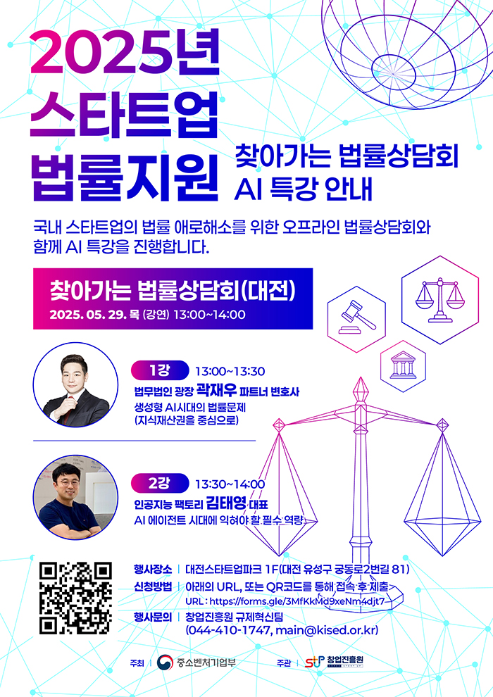 AI시대의 법률리스크를 미리 준비하고, 스타트업이 갖추어야 할 실질적인 역량을 직접 확인할 수 있는 좋은 기회입니다.