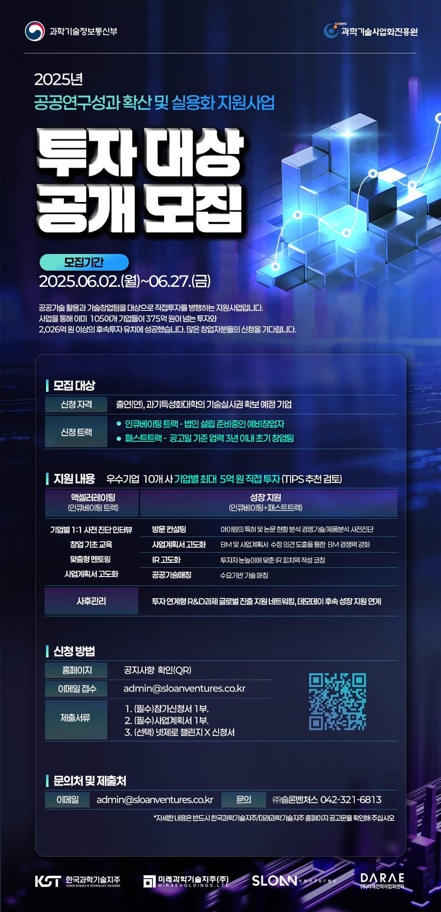 이전글 바로가기 [중앙사회서비스원] 2025년 소셜 링크 아카데미 3기 참여기업 모집(~6/20) 다음글 바로가기 [인탑스 액셀러레이팅 3기 하드웨어 스타트업 모집] 디자인, 설계, 제조 IR까지 한번에 스케일업!