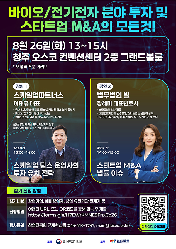 바이오·전기전자 스타트업을 위한 투자 유치 및 M&A 전략을 한 자리에서 확인하세요.