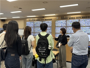 중앙선거관리위원회에서 공정선거참관단이 사전(우편)투표함 보관장소 CCTV를 확인하고 있다.